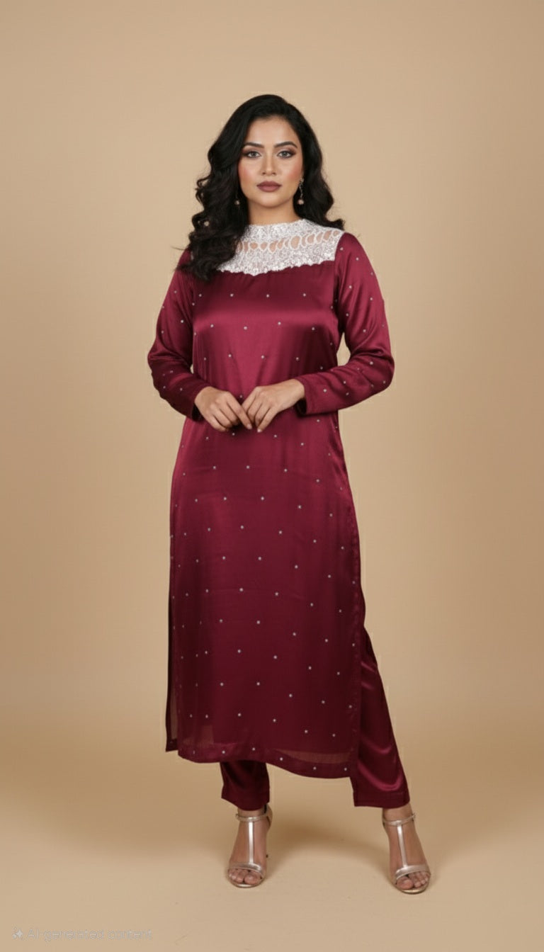 It comes as a 2 piece outfit( Long shirt and straight pants)